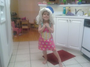 Step 1: Entreé…I had my choice actually of frozen chicken breasts, frozen pork chops, or frozen stew beef. Since I already had a chicken idea in mind, that’s what I picked out. Simple. Tossed the equivalent of two chicken breasts into a baking dish…yes, still completely frozen…poured about 1/4 cup of lemon juice in the bottom, and sprinkled the top with salt and pepper. Actually, one of Danielle’s daughters helped with the salt and pepper. Into a 350 degree over with the timer set for 45 minutes.