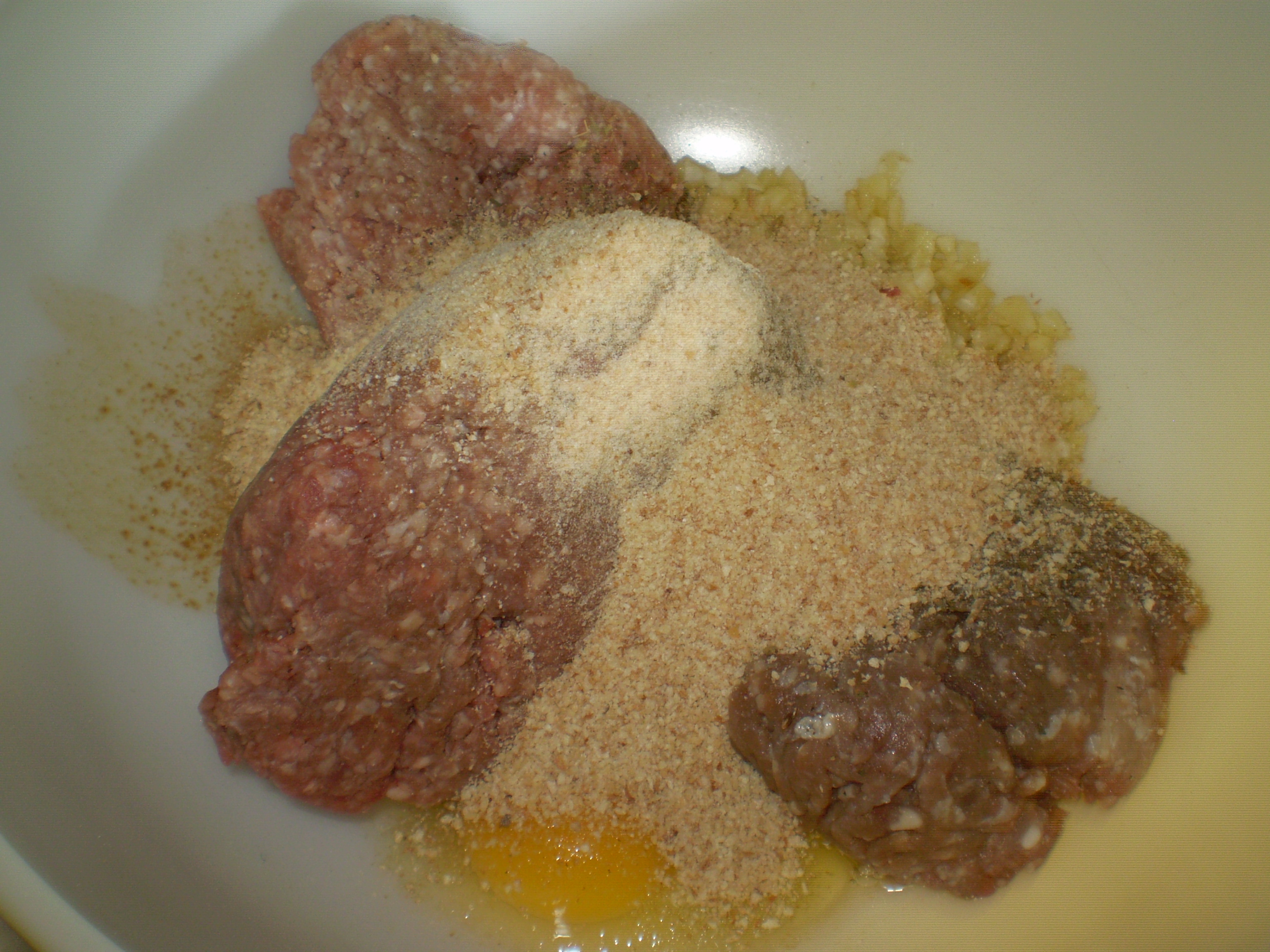 Now, here’s where the rubber meets the road in making meat mixtures…you need to taste it…yes, while it’s still raw. This is why it is so important to use organic meats, local if you can get it so you know exactly where the meat comes from. Just a tiny bit, now, to make sure you’ve got a pleasing blend of herbs and spices.