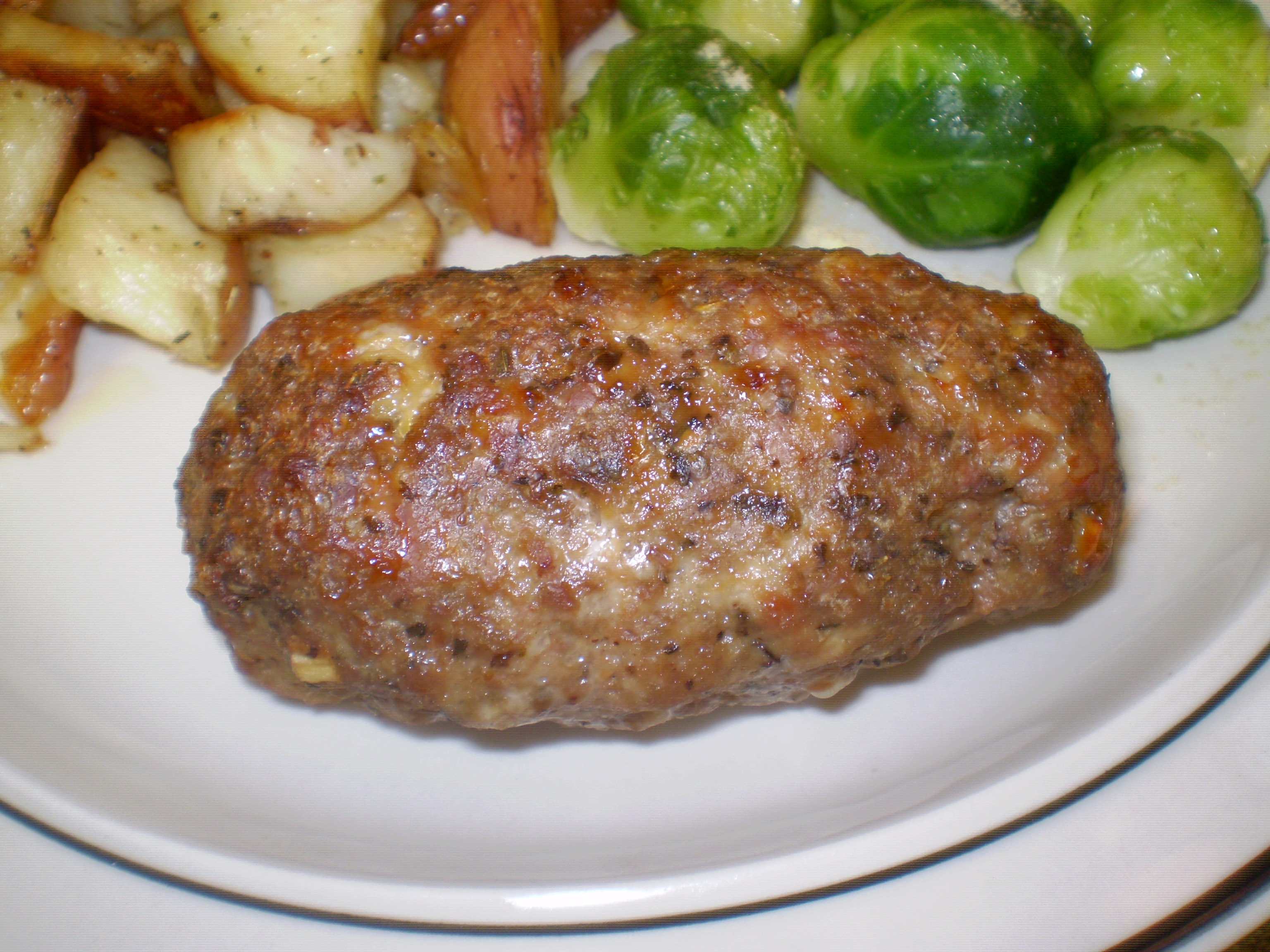 Now most folks know meatloaf as that hearty, budget-saving dinner staple: a ground beef, egg, ketchup, bread crumbs and spice mixture, perhaps with some diced veggies thrown in and a quick ketchup or bbq sauce carmelized (or burned) on top. Yep, I sure love that too. My PaPa’s recipe is still our family favorite.
