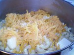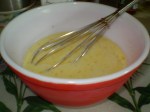 And before the pasta is done, whisk together your eggs, milk, dry mustard, salt and pepper. Now once you’re more experienced in making this, you’ll be able to adjust the balance of this custard to meet your desires…creamier set demands perhaps one less egg and a little more milk while a firmer set calls for the same mix but perhaps 2-3 egg whites added. Regardless, you always need approximately 3 cups of custard mixture per recipe.