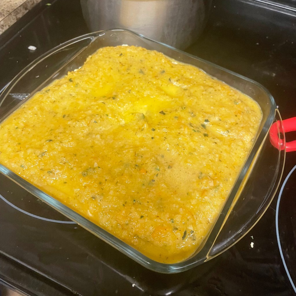 Once you’ve got all your layers done, bake at 350 for 35 minutes. If you are using any cheese on top of yours – regular or dairy free – I recommend adding at the 30-minute mark and baking for about 10 more minutes (longer if you like your cheese browned and crunchy).