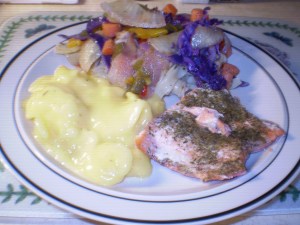 - 8 tiny golden creamer potatoes, quartered (or 4 medium or 2 large)